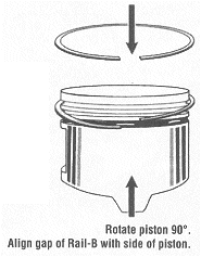 Place over Expander-A at the bottom edge of groove. Install in spiral motion. Rotate piston 90o, and align gap of Rail-B with side of piston.